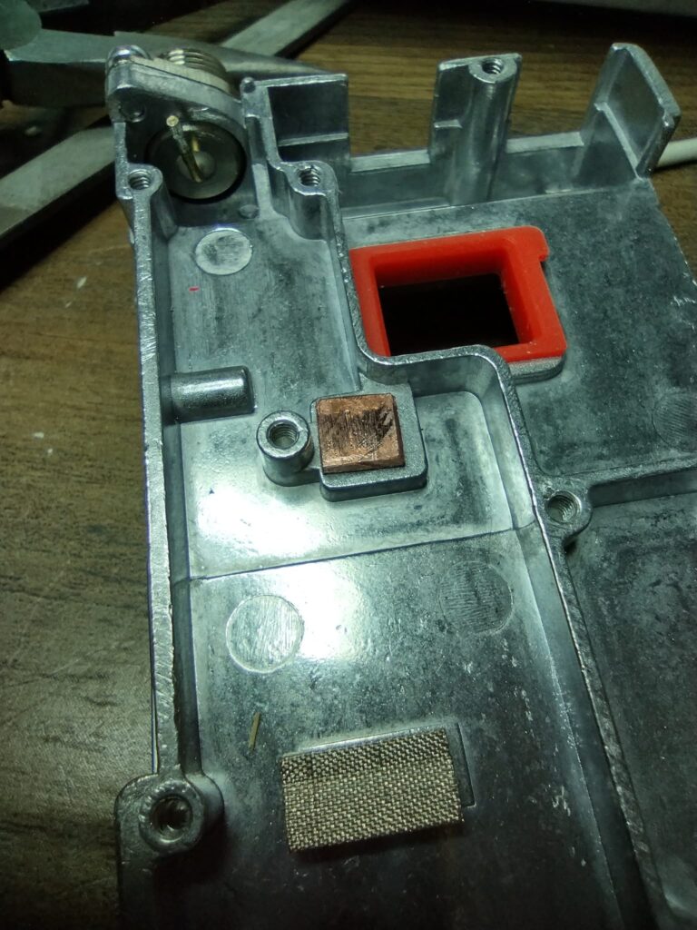 When I was reassembling the rig, I found an LDMOS (A5M06) which is the power amp, and had a weak thermal connection to the metal chassis via a spongy thermal pad, which was about 1mm thick. I decided to replace this with a copper pad made from pipe I ground down until it fit perfectly, then added silver heat compound to hold it in place. Maybe this will help with something. I also decided to add some anaerobic gasket material to the seals (automotive) when putting it back together, in a bid to help with the poorly sealing surfaces.